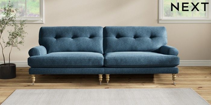 7.2.10 Erin Buttoned Back Deep Relaxed Sit 4 Seater Large Sofa Cotswold Chenille Dark Blue High Classic Turned Chrome Castor - Light | Made Click here to use our website with more accessibility support, for example screen readers