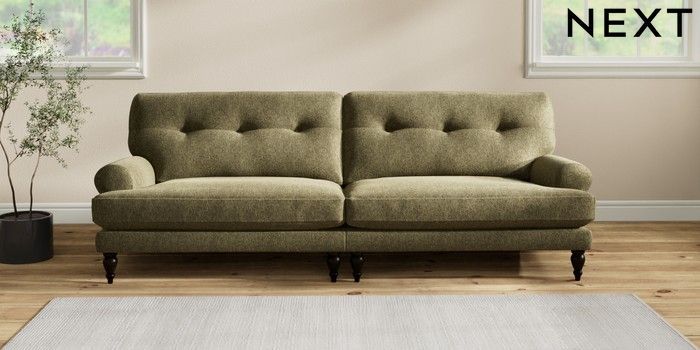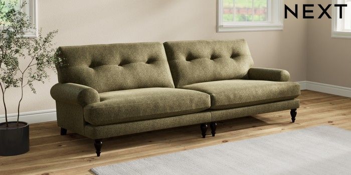 7.2.10 Erin Buttoned Back Deep Relaxed Sit 4 Seater Large Sofa Cotswold Chenille Dark Green High Classic Turned - Dark | Made Click here to use our website with more accessibility support, for example screen readers
