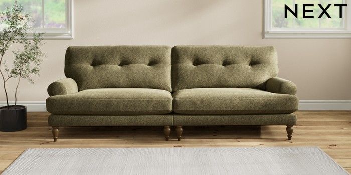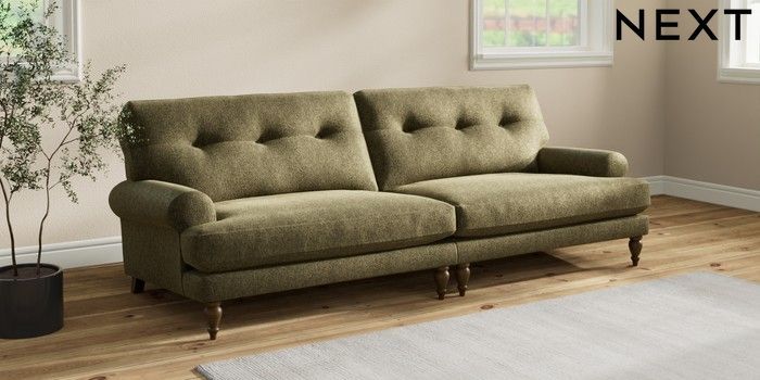 7.2.10 Erin Buttoned Back Deep Relaxed Sit 4 Seater Large Sofa Cotswold Chenille Dark Green High Classic Turned - Mid | Made Click here to use our website with more accessibility support, for example screen readers