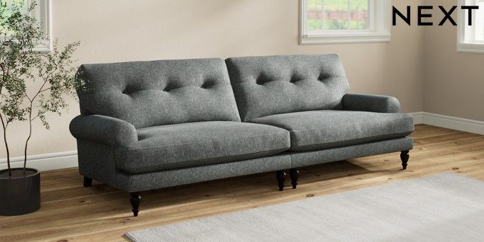 7.2.10 Erin Buttoned Back Deep Relaxed Sit 4 Seater Large Sofa Cotswold Chenille Dark Grey High Classic Turned - Dark | Made Click here to use our website with more accessibility support, for example screen readers