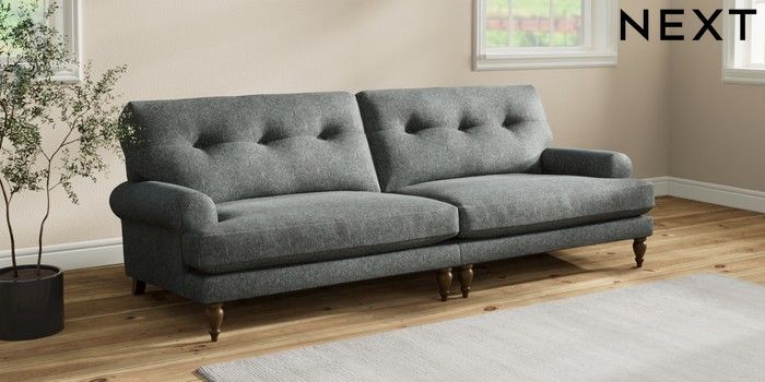 7.2.10 Erin Buttoned Back Deep Relaxed Sit 4 Seater Large Sofa Cotswold Chenille Dark Grey High Classic Turned - Mid | Made Click here to use our website with more accessibility support, for example screen readers