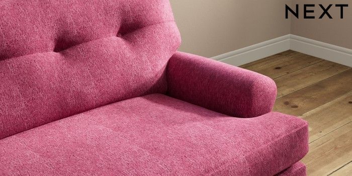 7.2.10 Erin Buttoned Back Deep Relaxed Sit 4 Seater Large Sofa Cotswold Chenille Dark Raspberry Pink High Classic Turned Brass Castor - Light | Made Click here to use our website with more accessibility support, for example screen readers