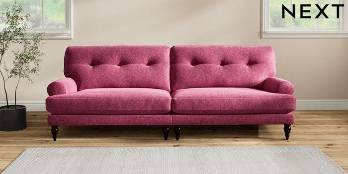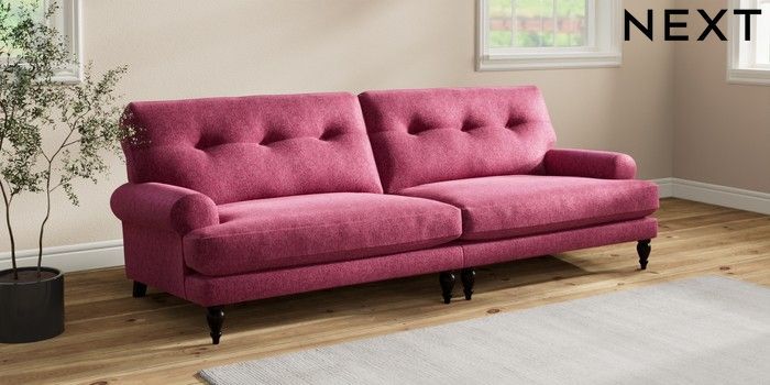 7.2.10 Erin Buttoned Back Deep Relaxed Sit 4 Seater Large Sofa Cotswold Chenille Dark Raspberry Pink High Classic Turned - Dark | Made Click here to use our website with more accessibility support, for example screen readers