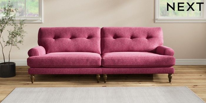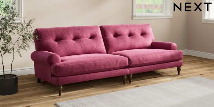7.2.10 Erin Buttoned Back Deep Relaxed Sit 4 Seater Large Sofa Cotswold Chenille Dark Raspberry Pink High Classic Turned - Mid | Made Click here to use our website with more accessibility support, for example screen readers
