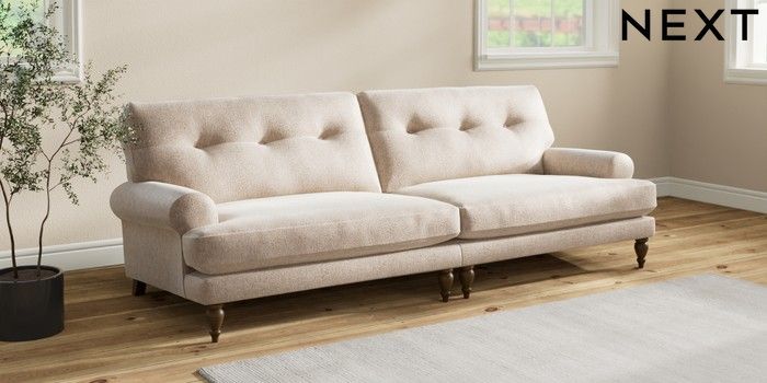 7.2.10 Erin Buttoned Back Deep Relaxed Sit 4 Seater Large Sofa Cotswold Chenille Light Natural High Classic Turned - Mid | Made Click here to use our website with more accessibility support, for example screen readers