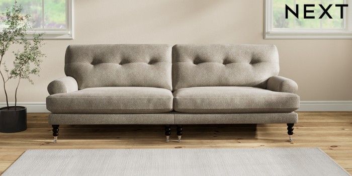 7.2.10 Erin Buttoned Back Deep Relaxed Sit 4 Seater Large Sofa Cotswold Chenille Mid Mink Brown High Classic Turned Chrome Castor - Dark | Made Click here to use our website with more accessibility support, for example screen readers
