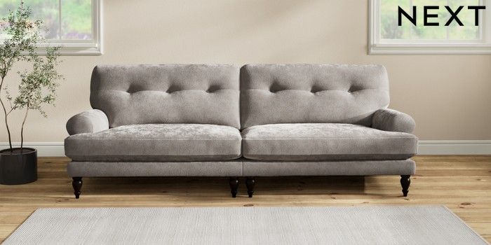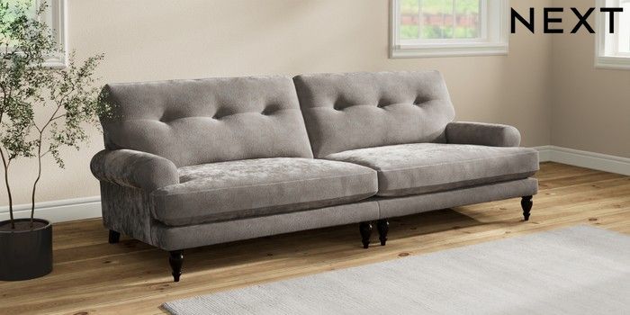 7.2.10 Erin Buttoned Back Deep Relaxed Sit 4 Seater Large Sofa Distressed Velour French Grey High Classic Turned - Dark | Made Click here to use our website with more accessibility support, for example screen readers