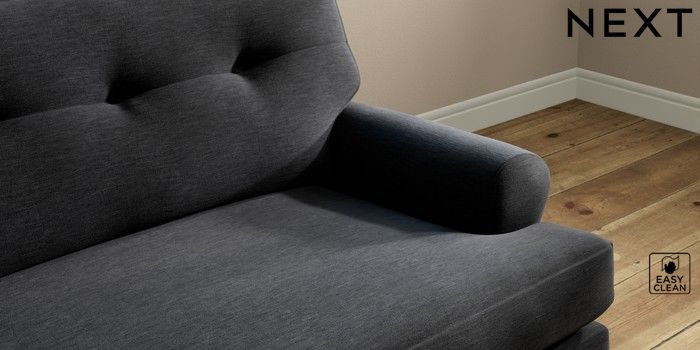 7.2.10 Erin Buttoned Back Deep Relaxed Sit 4 Seater Large Sofa Fine Chenille Easy Clean Black High Classic Turned Chrome Castor - Mid | Made Click here to use our website with more accessibility support, for example screen readers