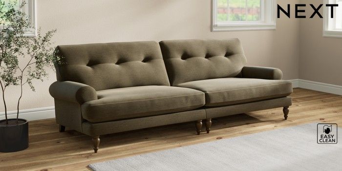 7.2.10 Erin Buttoned Back Deep Relaxed Sit 4 Seater Large Sofa Fine Chenille Easy Clean Dark Moss Green High Classic Turned - Mid | Made Click here to use our website with more accessibility support, for example screen readers