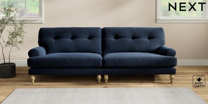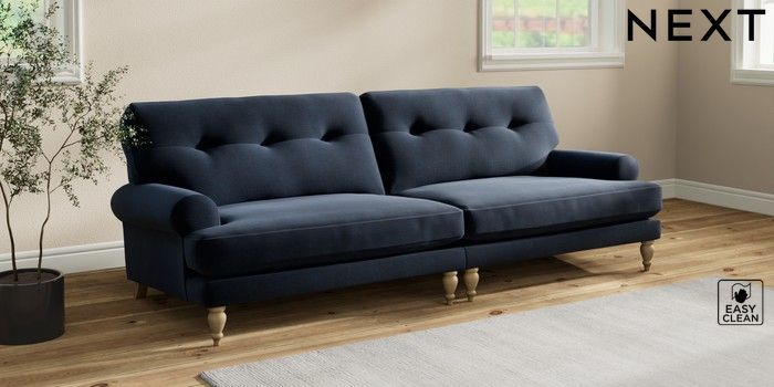 7.2.10 Erin Buttoned Back Deep Relaxed Sit 4 Seater Large Sofa Fine Chenille Easy Clean Dark Navy Blue High Classic Turned - Light | Made Click here to use our website with more accessibility support, for example screen readers