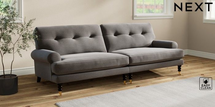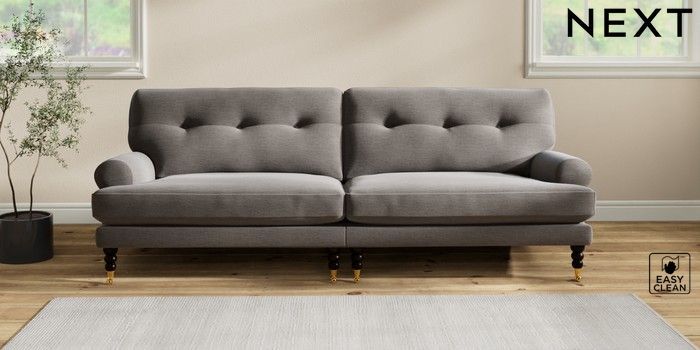 Add charm to your living space with the Erin Button Back Sofa. Its elegant scroll arms and classic button-back cushions create a timeless look. You'll love its "Relaxed Sit" cushions, specially designed for ultimate comfort. These cushions are made with clever foam and fibre, giving you a wonderfully soft, plump feel. To keep them looking their best, simply plump and turn them regularly. Plus, you can make the Erin your own by choosing from a huge range of coloured fabrics.