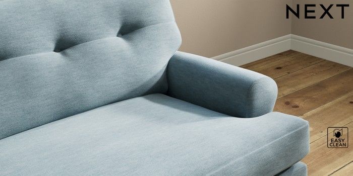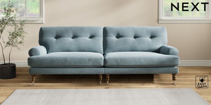 7.2.10 Erin Buttoned Back Deep Relaxed Sit 4 Seater Large Sofa Fine Chenille Easy Clean Mid Blue High Classic Turned Chrome Castor - Mid | Made Click here to use our website with more accessibility support, for example screen readers