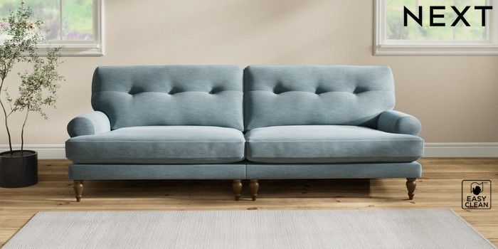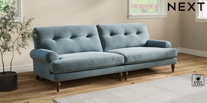 7.2.10 Erin Buttoned Back Deep Relaxed Sit 4 Seater Large Sofa Fine Chenille Easy Clean Mid Blue High Classic Turned - Mid | Made Click here to use our website with more accessibility support, for example screen readers
