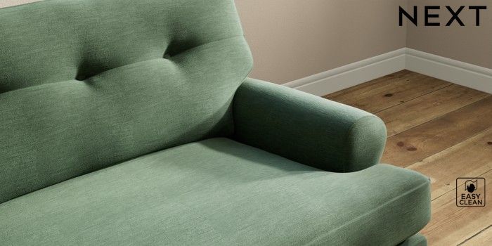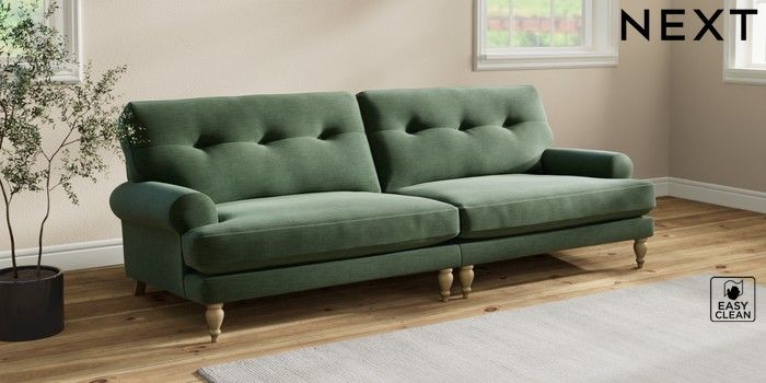 7.2.10 Erin Buttoned Back Deep Relaxed Sit 4 Seater Large Sofa Fine Chenille Easy Clean Mid Khaki Green High Classic Turned - Light | Made Click here to use our website with more accessibility support, for example screen readers