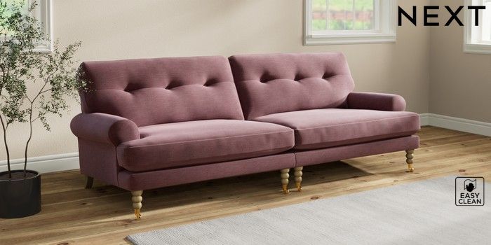 Add charm to your living space with the Erin Button Back Sofa. Its elegant scroll arms and classic button-back cushions create a timeless look. You'll love its "Relaxed Sit" cushions, specially designed for ultimate comfort. These cushions are made with clever foam and fibre, giving you a wonderfully soft, plump feel. To keep them looking their best, simply plump and turn them regularly. Plus, you can make the Erin your own by choosing from a huge range of coloured fabrics.
