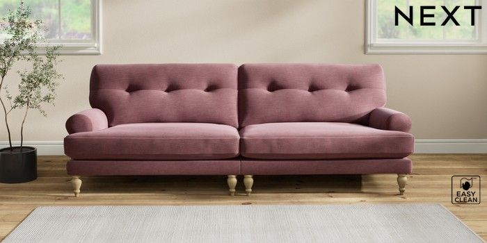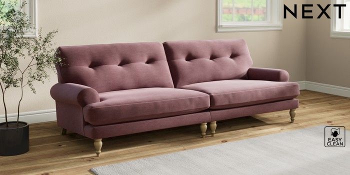 7.2.10 Erin Buttoned Back Deep Relaxed Sit 4 Seater Large Sofa Fine Chenille Easy Clean Mid Mulberry Purple High Classic Turned - Light | Made Click here to use our website with more accessibility support, for example screen readers