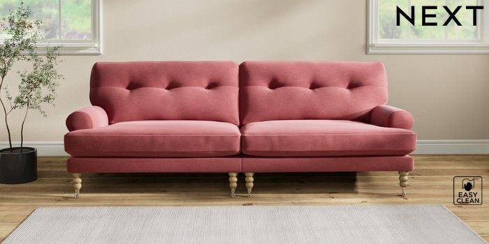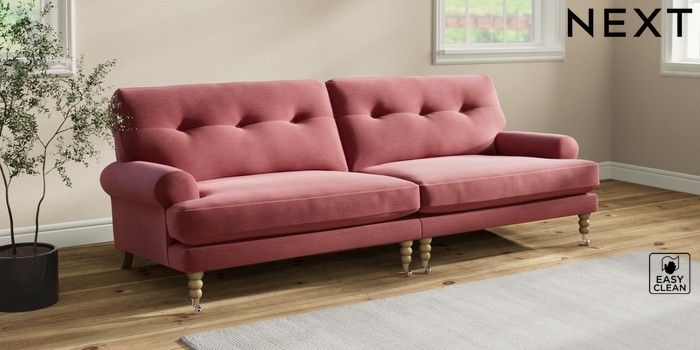 7.2.10 Erin Buttoned Back Deep Relaxed Sit 4 Seater Large Sofa Fine Chenille Easy Clean Mid Pink High Classic Turned Chrome Castor - Light | Made Click here to use our website with more accessibility support, for example screen readers
