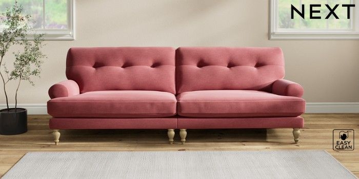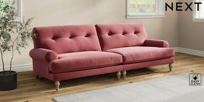 7.2.10 Erin Buttoned Back Deep Relaxed Sit 4 Seater Large Sofa Fine Chenille Easy Clean Mid Pink High Classic Turned - Light | Made Click here to use our website with more accessibility support, for example screen readers