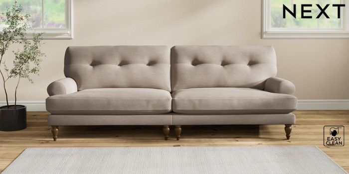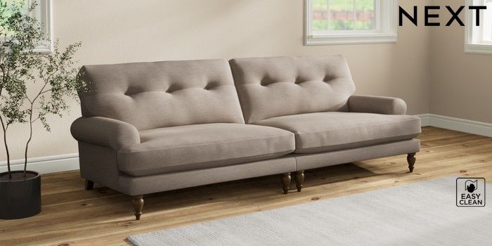 7.2.10 Erin Buttoned Back Deep Relaxed Sit 4 Seater Large Sofa Fine Chenille Easy Clean Mid Taupe Brown High Classic Turned - Mid | Made Click here to use our website with more accessibility support, for example screen readers