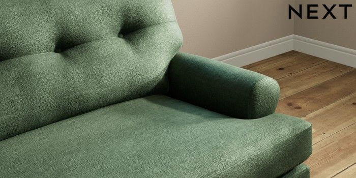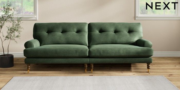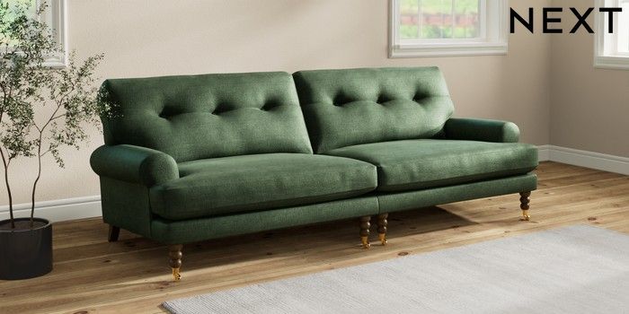 7.2.10 Erin Buttoned Back Deep Relaxed Sit 4 Seater Large Sofa Luxe Chenille Dark Green High Classic Turned Brass Castor - Mid | Made Click here to use our website with more accessibility support, for example screen readers