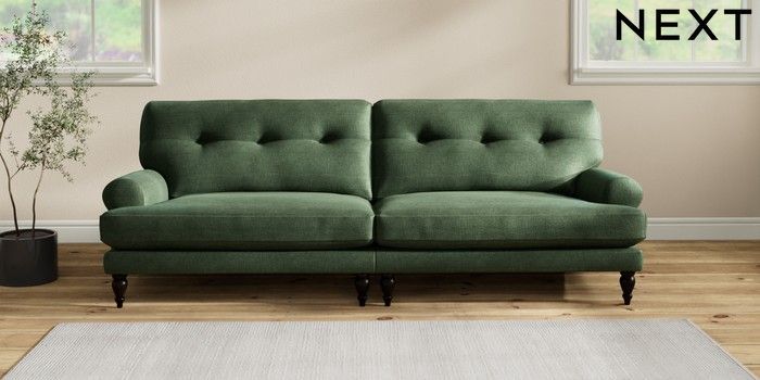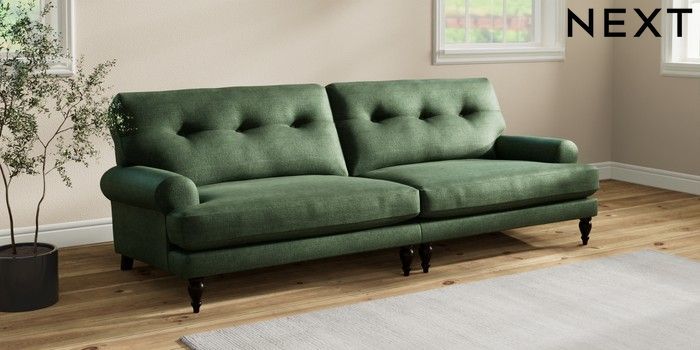 7.2.10 Erin Buttoned Back Deep Relaxed Sit 4 Seater Large Sofa Luxe Chenille Dark Green High Classic Turned - Dark | Made Click here to use our website with more accessibility support, for example screen readers