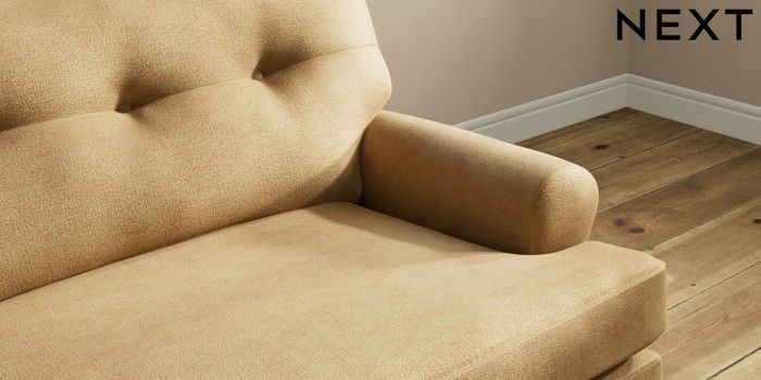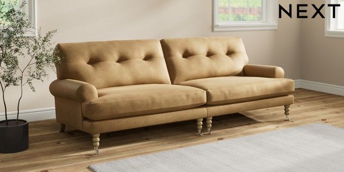 7.2.10 Erin Buttoned Back Deep Relaxed Sit 4 Seater Large Sofa Luxe Chenille Honey Yellow High Classic Turned Chrome Castor - Light | Made Click here to use our website with more accessibility support, for example screen readers