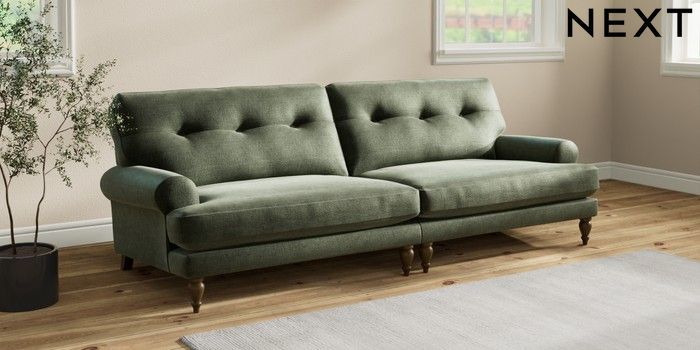 7.2.10 Erin Buttoned Back Deep Relaxed Sit 4 Seater Large Sofa Luxe Chenille Mid Green High Classic Turned - Mid | Made Click here to use our website with more accessibility support, for example screen readers