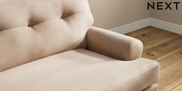 7.2.10 Erin Buttoned Back Deep Relaxed Sit 4 Seater Large Sofa Luxe Chenille Mid Natural High Classic Turned Brass Castor - Light | Made Click here to use our website with more accessibility support, for example screen readers