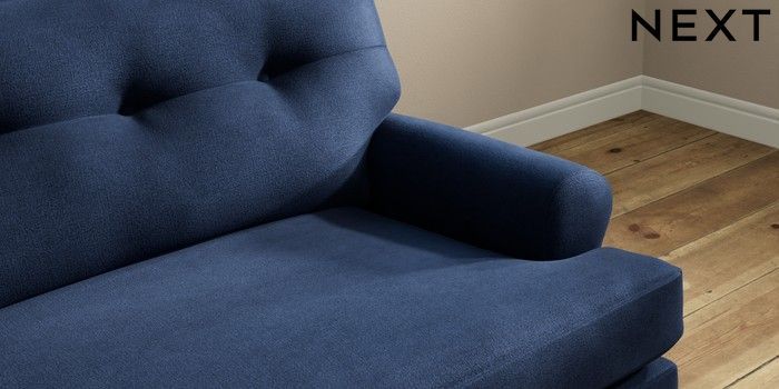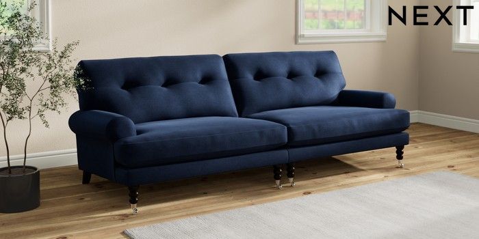 7.2.10 Erin Buttoned Back Deep Relaxed Sit 4 Seater Large Sofa Luxe Chenille Navy Blue High Classic Turned Chrome Castor - Dark | Made Click here to use our website with more accessibility support, for example screen readers