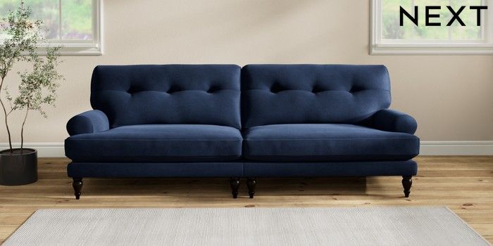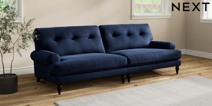 7.2.10 Erin Buttoned Back Deep Relaxed Sit 4 Seater Large Sofa Luxe Chenille Navy Blue High Classic Turned - Dark | Made Click here to use our website with more accessibility support, for example screen readers