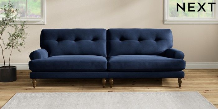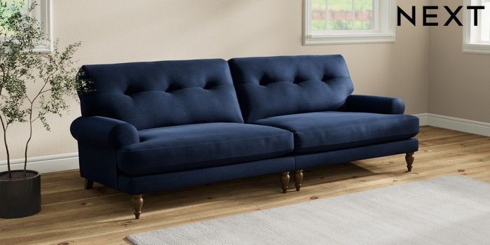 7.2.10 Erin Buttoned Back Deep Relaxed Sit 4 Seater Large Sofa Luxe Chenille Navy Blue High Classic Turned - Mid | Made Click here to use our website with more accessibility support, for example screen readers