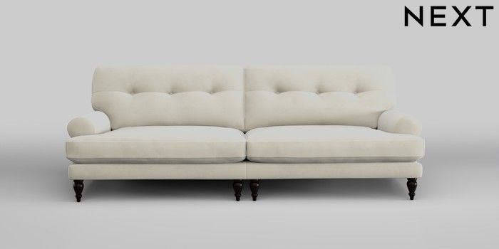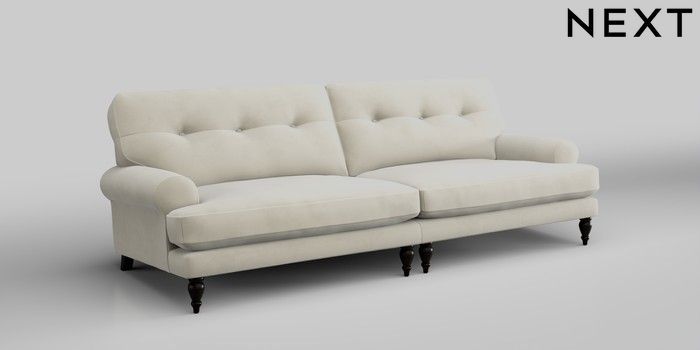 7.2.10 Erin Buttoned Back Deep Relaxed Sit 4 Seater Large Sofa Luxe Chenille Oyster High Classic Turned - Dark | Made Click here to use our website with more accessibility support, for example screen readers