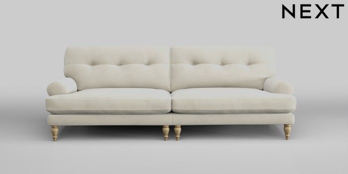 7.2.10 Erin Buttoned Back Deep Relaxed Sit 4 Seater Large Sofa Luxe Chenille Oyster High Classic Turned - Light | Made Click here to use our website with more accessibility support, for example screen readers