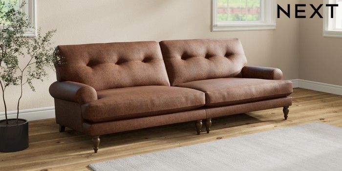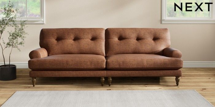 7.2.10 Erin Buttoned Back Deep Relaxed Sit 4 Seater Large Sofa Monza Faux Leather Easy Clean Chestnut Brown High Classic Turned - Mid | Made Click here to use our website with more accessibility support, for example screen readers