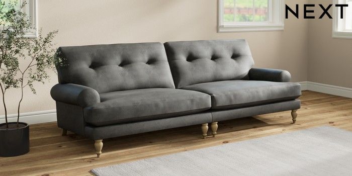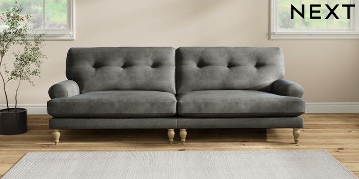 7.2.10 Erin Buttoned Back Deep Relaxed Sit 4 Seater Large Sofa Monza Faux Leather Easy Clean Dark Grey High Classic Turned - Light | Made Click here to use our website with more accessibility support, for example screen readers