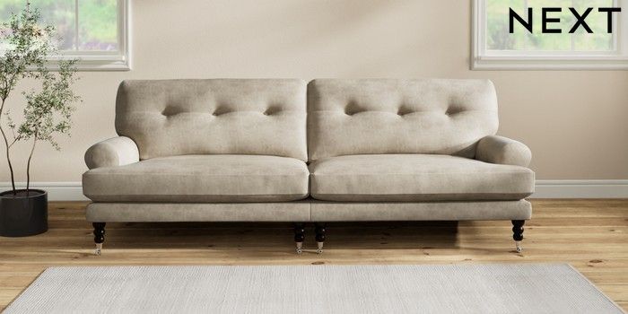 7.2.10 Erin Buttoned Back Deep Relaxed Sit 4 Seater Large Sofa Monza Faux Leather Easy Clean Mink Brown High Classic Turned Chrome Castor - Dark | Made Click here to use our website with more accessibility support, for example screen readers