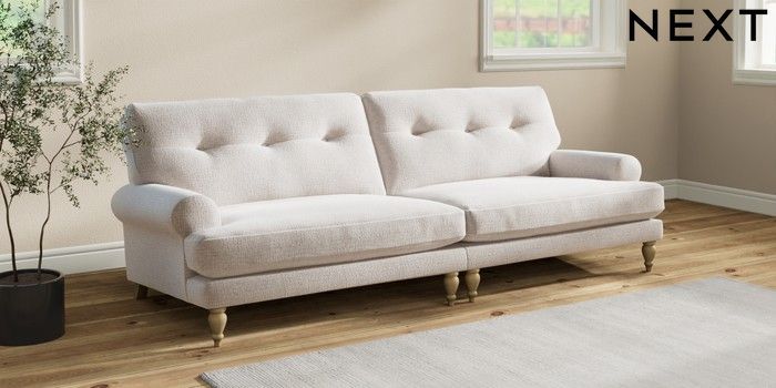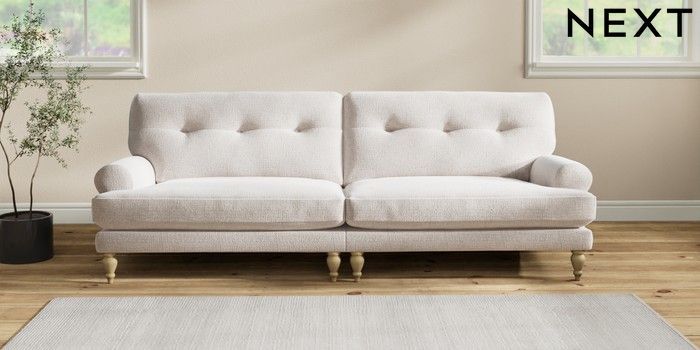 Add charm to your living space with the Erin Button Back Sofa. Its elegant scroll arms and classic button-back cushions create a timeless look. You'll love its "Relaxed Sit" cushions, specially designed for ultimate comfort. These cushions are made with clever foam and fibre, giving you a wonderfully soft, plump feel. To keep them looking their best, simply plump and turn them regularly. Plus, you can make the Erin your own by choosing from a huge range of coloured fabrics.