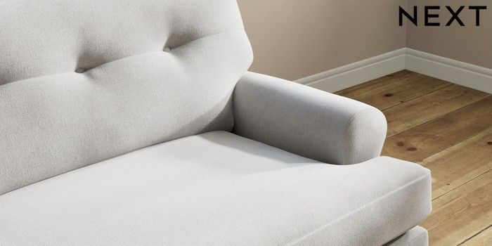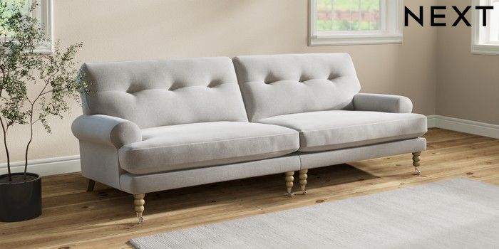 7.2.10 Erin Buttoned Back Deep Relaxed Sit 4 Seater Large Sofa Natural Mix Light Grey High Classic Turned Chrome Castor - Light | Made Click here to use our website with more accessibility support, for example screen readers