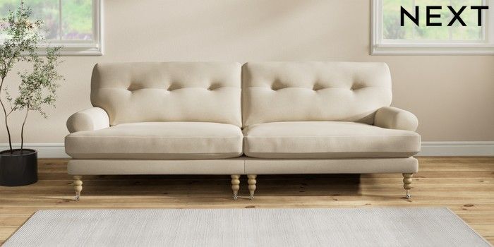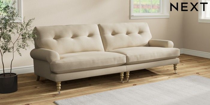 7.2.10 Erin Buttoned Back Deep Relaxed Sit 4 Seater Large Sofa Natural Mix Light Natural High Classic Turned Chrome Castor - Light | Made Click here to use our website with more accessibility support, for example screen readers