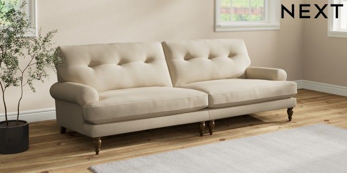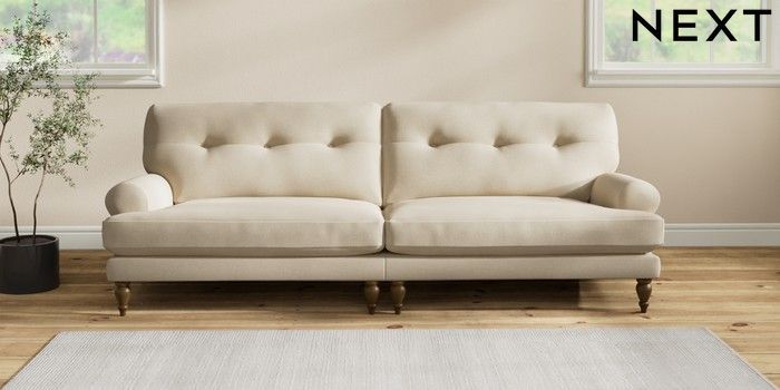 7.2.10 Erin Buttoned Back Deep Relaxed Sit 4 Seater Large Sofa Natural Mix Light Natural High Classic Turned - Mid | Made Click here to use our website with more accessibility support, for example screen readers
