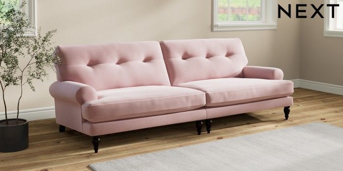 7.2.10 Erin Buttoned Back Deep Relaxed Sit 4 Seater Large Sofa Natural Mix Light Rose Pink High Classic Turned - Dark | Made Click here to use our website with more accessibility support, for example screen readers