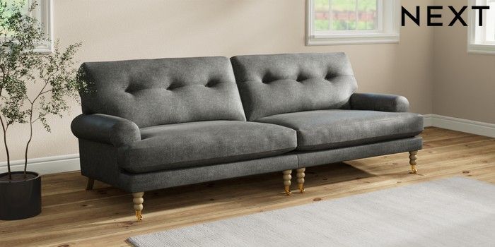 Add charm to your living space with the Erin Button Back Sofa. Its elegant scroll arms and classic button-back cushions create a timeless look. You'll love its "Relaxed Sit" cushions, specially designed for ultimate comfort. These cushions are made with clever foam and fibre, giving you a wonderfully soft, plump feel. To keep them looking their best, simply plump and turn them regularly. Plus, you can make the Erin your own by choosing from a huge range of coloured fabrics.