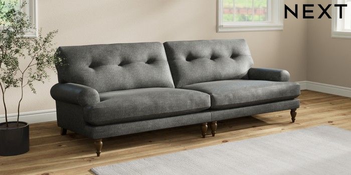 7.2.10 Erin Buttoned Back Deep Relaxed Sit 4 Seater Large Sofa Plush Chenille Dark Grey High Classic Turned - Mid | Made Click here to use our website with more accessibility support, for example screen readers