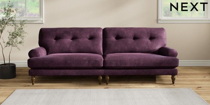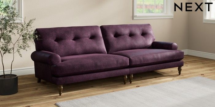 7.2.10 Erin Buttoned Back Deep Relaxed Sit 4 Seater Large Sofa Plush Chenille Dark Plum Purple High Classic Turned - Mid | Made Click here to use our website with more accessibility support, for example screen readers