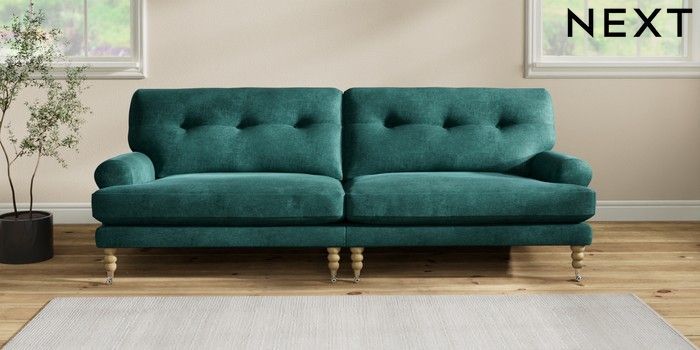7.2.10 Erin Buttoned Back Deep Relaxed Sit 4 Seater Large Sofa Plush Chenille Dark Teal Green High Classic Turned Chrome Castor - Light | Made Click here to use our website with more accessibility support, for example screen readers