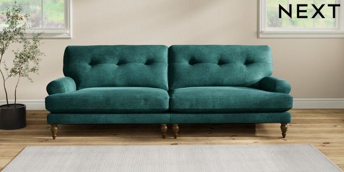 7.2.10 Erin Buttoned Back Deep Relaxed Sit 4 Seater Large Sofa Plush Chenille Dark Teal Green High Classic Turned - Mid | Made Click here to use our website with more accessibility support, for example screen readers