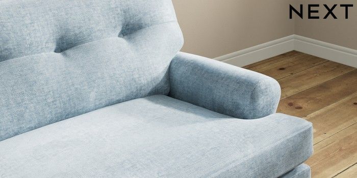 7.2.10 Erin Buttoned Back Deep Relaxed Sit 4 Seater Large Sofa Plush Chenille Light Blue High Classic Turned Brass Castor - Dark | Made Click here to use our website with more accessibility support, for example screen readers