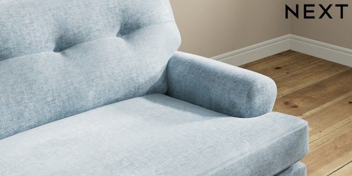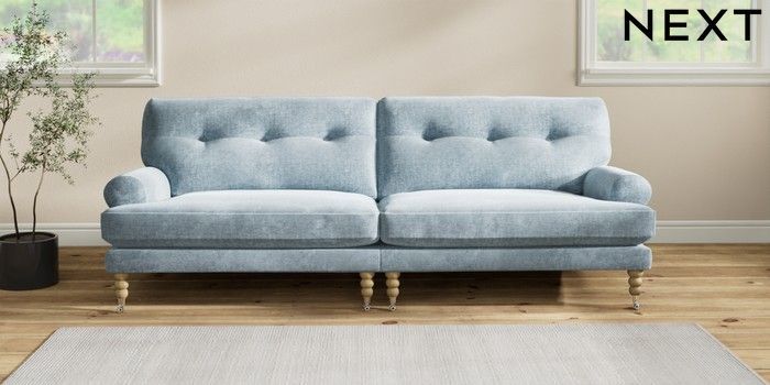 7.2.10 Erin Buttoned Back Deep Relaxed Sit 4 Seater Large Sofa Plush Chenille Light Blue High Classic Turned Chrome Castor - Light | Made Click here to use our website with more accessibility support, for example screen readers