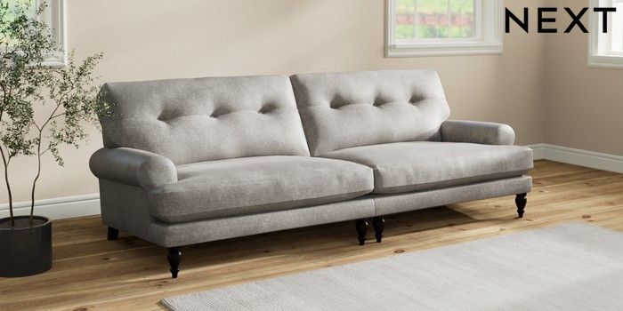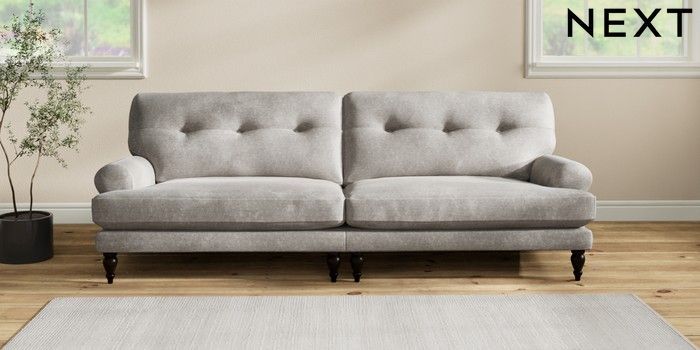 7.2.10 Erin Buttoned Back Deep Relaxed Sit 4 Seater Large Sofa Plush Chenille Light Grey High Classic Turned - Dark | Made Click here to use our website with more accessibility support, for example screen readers