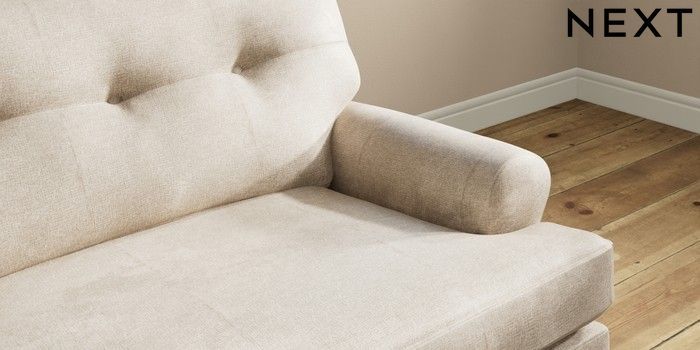 7.2.10 Erin Buttoned Back Deep Relaxed Sit 4 Seater Large Sofa Plush Chenille Light Natural High Classic Turned Chrome Castor - Dark | Made Click here to use our website with more accessibility support, for example screen readers
